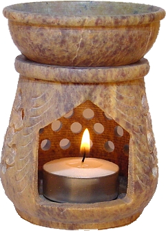Σε αρωμαθεραπευτικούς καυστήρες. Οι μικροί αυτοί καυστήρες αποτελούνται από ένα πήλινο δοχείο που χωράει 30-50 ml νερό. Με την προσθήκη 4-10 σταγόνων αιθερίου ελαίου και με την θέρμανση από ένα μικρό κερί στη βάση του καυστήρα επιτρέπεται η σταδιακή απελευθέρωση των θεραπευτικών ουσιών των αιθερίων ελαίων και ο αρωματισμός του χώρου.