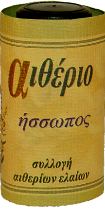 Το άχρωμο έως υποκίτρινο αιθέριο έλαιο του ήσσωπου προκύπτει με απόσταξη από τα φύλλα και τα άνθη του φυτού και ενδείκνυται για το κρύωμα, το βήχα, τη γρίπη, τη βρογχίτιδα και το άσθμα. Βοηθά στην καταπολέμηση του  άγχους, της κατάθλιψης, της κούρασης, των νεύρων, του στρες και της νευρικής εξάντλησης. Το αιθέριο έλαιο του ήσσωπου βοηθά επίσης σε μία σειρά από δερματικά προβλήματα όπως το έκζεμα και η δερματίτιδα.  © αιθέριο / Δρ. Χ.Ν. Χασιώτης