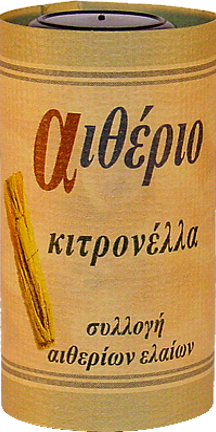 Το αιθέριο έλαιο εξάγεται από ολόκληρο το υπέργειο τμήμα του φυτού, έχει κίτρινο-καφέ χρώμα και φρέσκο, δυνατό λεμονάτο άρωμα. Είναι από τα πιο αναζωογονητικά αιθέρια έλαια πολύ χρήσιμο όταν αισθάνεστε ζέστη και ιδρώνετε γιατί έχει ισχυρή αποσμητική δράση. Το αιθέριο έλαιο της κιτρονέλλας είναι ευρέως γνωστό για την εντομοαπωθητική του δράση και για να κρατά τους ψύλλους μακριά από τα κατοικίδια ζώα καθώς και το ωραίο του άρωμα. Καταπολεμά την λιπαρότητα του δέρματος, τον πονοκέφαλο, τη γρίπη και τους ρευματικούς πόνους ενώ έχει και ευεργετική επίδραση στην πνευματική κούραση, στη συγκέντρωση και τη διαύγεια του μυαλού. Τέλος πέραν της εντομοαπωθητικής του δράσης καθαρό έλαιο μπορεί να χρησιμοποιηθεί στα τσιμπίματα εντόμων και κουνουπιών, επειδή ανακουφίζει από τη φαγούρα και απολυμαίνει την πληγή. © αιθέριο / Δρ. Χ.Ν. Χασιώτης